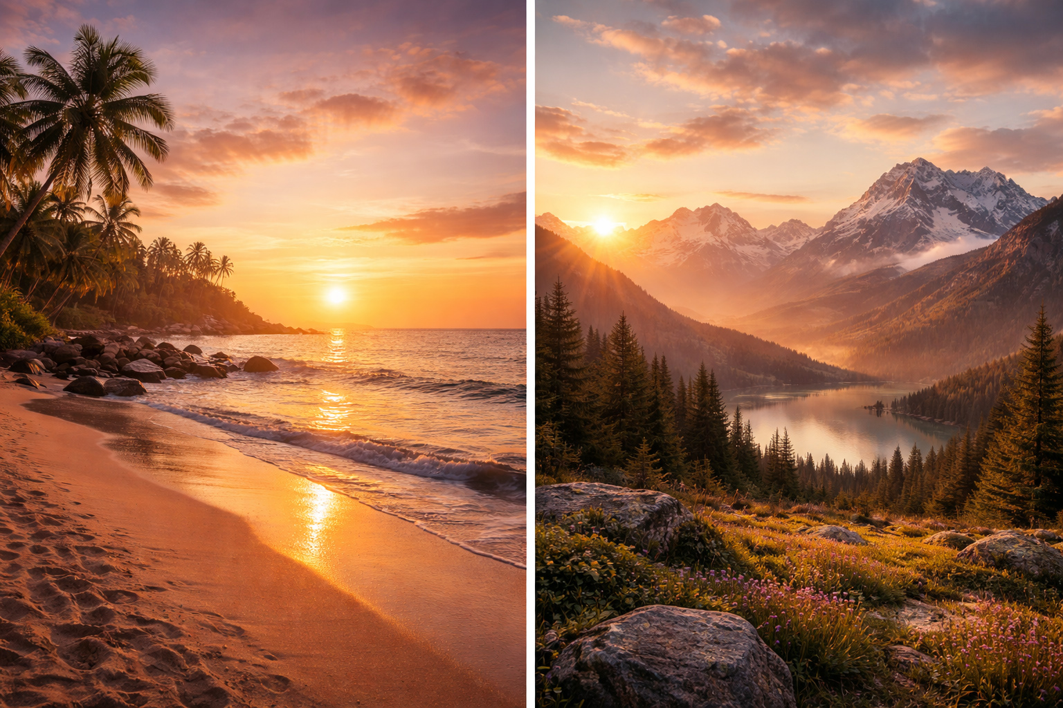 AI landscape photography is perfect for showing nature, mountains, beaches, and wide travel views.