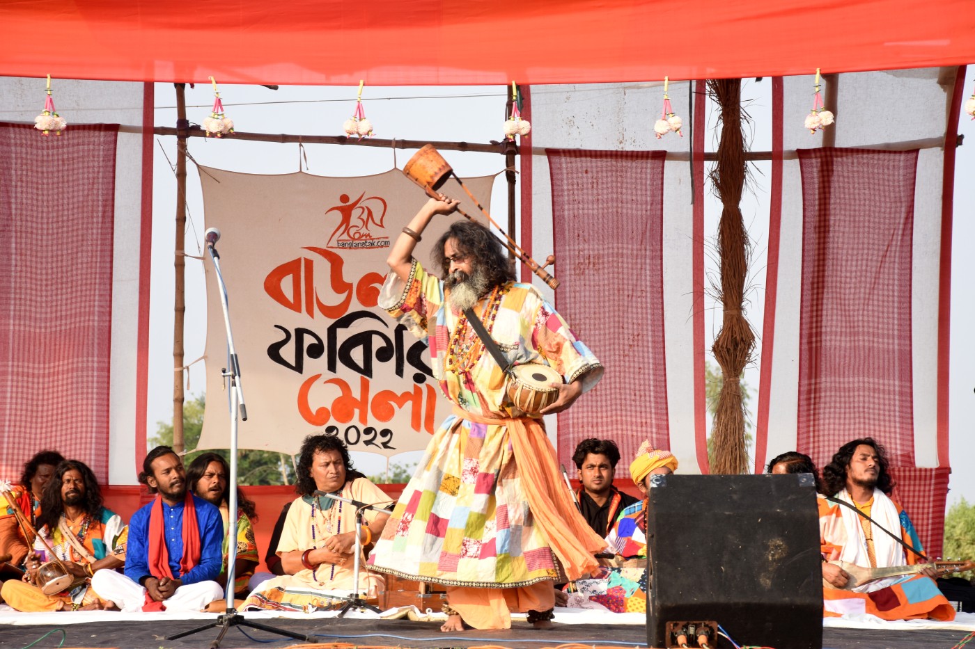 Baul is a spiritual and soulful folk dance and music tradition of Bengal, often associated with the Baul community, known for their distinctive philosophy and devotion to universal love. The dancers, usually accompanied by the Baul singers who play traditional instruments like the ektara (a single-string instrument), perform simple yet expressive movements, sometimes swaying to the rhythm of the music. The costume is typically simple but colorful, symbolizing the humble lifestyle of the Baul people.