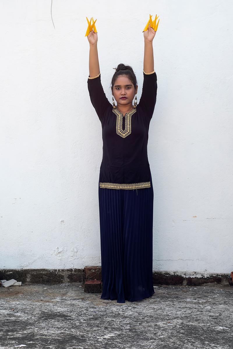 Now click the first shot. Ask your model to maintain the marked line and shift into the second doted position. Click the second shot.
